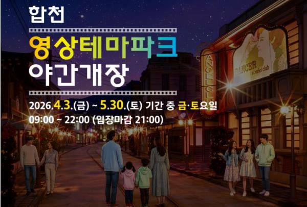 [한국제일신문, 김성옥기자] 합천군은 4월3일부터 5월30일까지 합천영상테마파크 및 청와대 세트장을 대상으로 주말 야간개장을 실시한다.