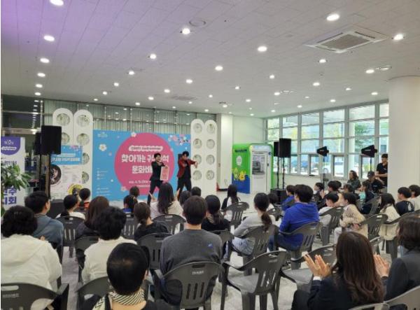 [한국제일신문, 김성옥기자] 진주시는 지난 15일 충무공동 복합혁신센터에서 ‘구석구석 문화가 있는 날’ 4월 3주 차(3회차) 프로그램으로 『찾아가는 문화배달』 행사를 개최했다.