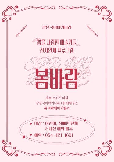 이번 프로그램은 전시 관람과 체험활동을 연계한 참여형 콘텐츠로 어린이와 장애인 단체가 쉽게 참여할 수 있도록 기획됐으며, 봄을 주제로 한 ‘바람개비 만들기 체험’으로 구성되어 있다.